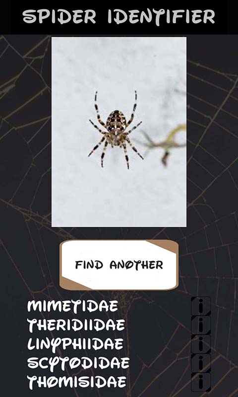Сделав фотографии или фотографии, сделанные ранее, вы можете узнать, что это за паук, появится классификация с пятью научными названиями, которые наиболее похожи, нажав соответствующую кнопку, вы можете напрямую найти всю информацию в Интернете.