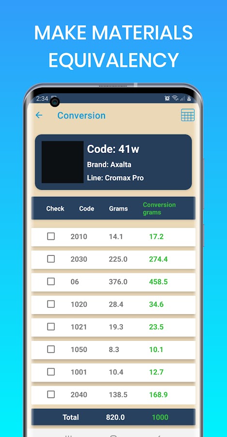 • ⚖️ Легкая эквивалентность краски в граммах, помогающая вам достичь идеального соответствия каждый раз.