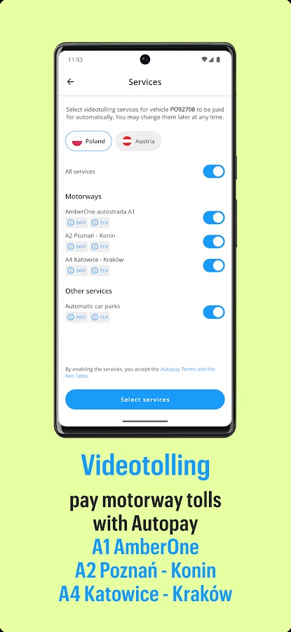 Приложение для оплаты виньеток в Австрии, Болгарии, Чехии, Словакии, Словении, Швейцарии и Венгрии. Плата за автомагистрали А1, А2, А4 и парковку в Польше. Путешествуйте без проблем с Autopay.