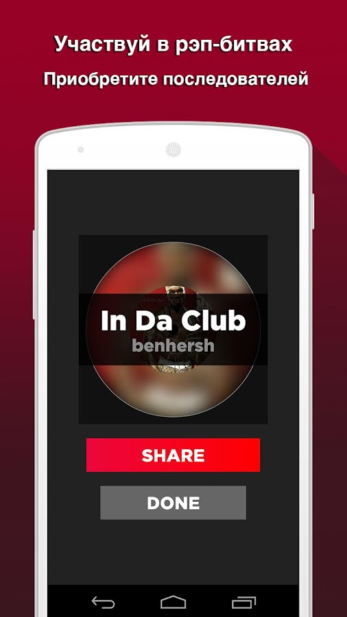 — Делись своим рэпом по SMS, электронной почте, в Facebook и Twitter. Набирай популярность.