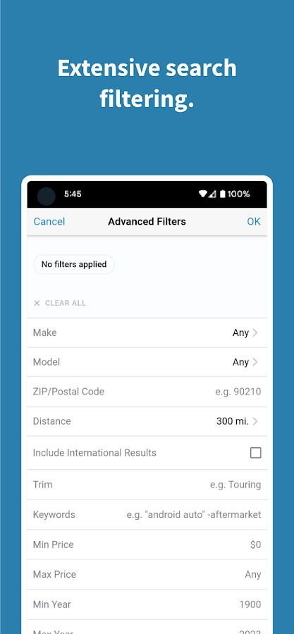 О: В первую очередь мы работаем над улучшением расширенного поиска, чтобы сделать его более интуитивным. Позже мы добавим дополнительный вход в систему для обмена любимыми поисковыми запросами и списками между приложением и Интернетом, а также между устройствами, а также возможность управлять сохраненными поисковыми запросами и, в конечном итоге, сохраненными и игнорируемыми транспортными средствами, и все это из приложения. После этого сообщите нам, что вы хотели бы увидеть.