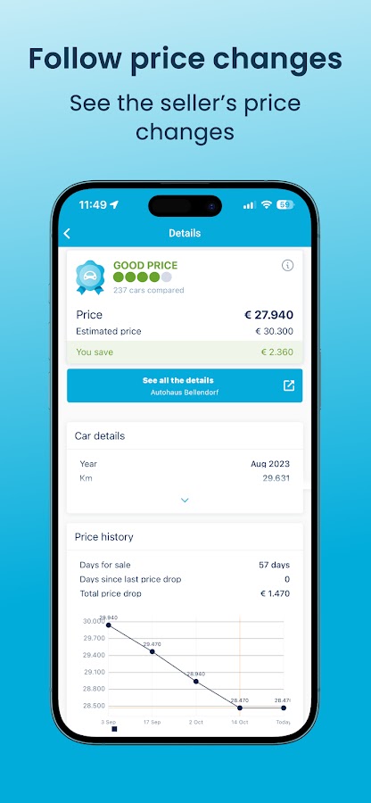 AutoUncle поможет вам найти лучшие предложения по подержанным автомобилям, сравнивая более 11 миллионов объявлений с более чем 1900 сайтов по всей Европе. Найдите справедливые цены, проверенных продавцов и реальную прозрачность рынка — все в одном приложении.