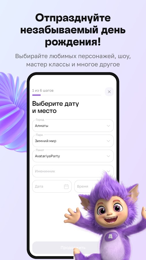 Avatariya – это мобильное приложение, созданное для удобного и увлекательного взаимодействия с парками развлечений для детей и их родителей. Оно позволяет легко выбрать парк, забронировать мероприятия, участвовать в викторинах и получать бонусы за активное участие.