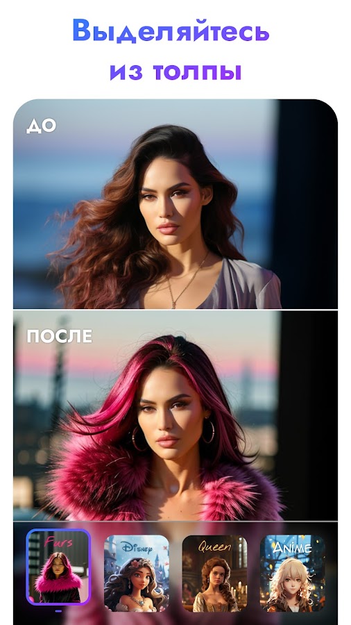 — Создание аватара с помощью приложения AI: создайте свой уникальный аватар, используя наш продвинутый генератор аватаров AI, который сочетает в себе последние достижения в области AI технологий и художественного мастерства.