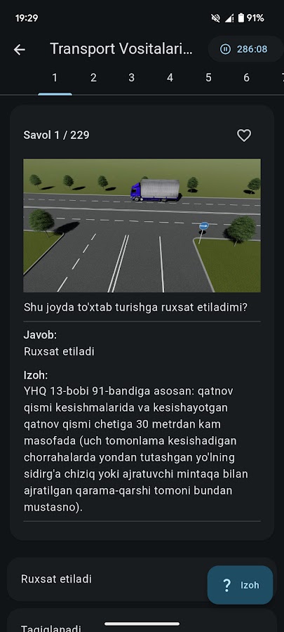 Если вы хотите успешно сдать теоретический экзамен по правилам дорожного движения (ПДД) в Узбекистане, вам необходимо научиться правильно отвечать на вопросы, представленные в экзаменационных билетах (шаблонах) по ПДД. Наше приложение поможет вам в этом простом деле.