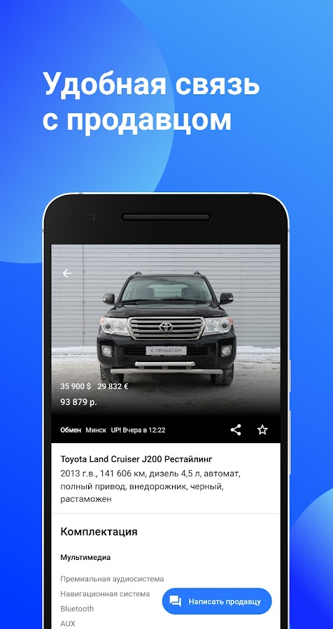 «Автобарахолка Onliner» – удобное приложение для продажи и покупки подержанных или новых автомобилей у частных лиц, автохаусов и официальных дилеров.