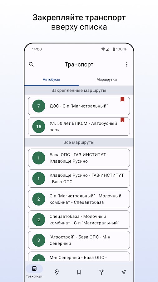 Маршруты и остановки можно добавлять в избранное. Подсказки внутри приложения помогут это сделать легко.