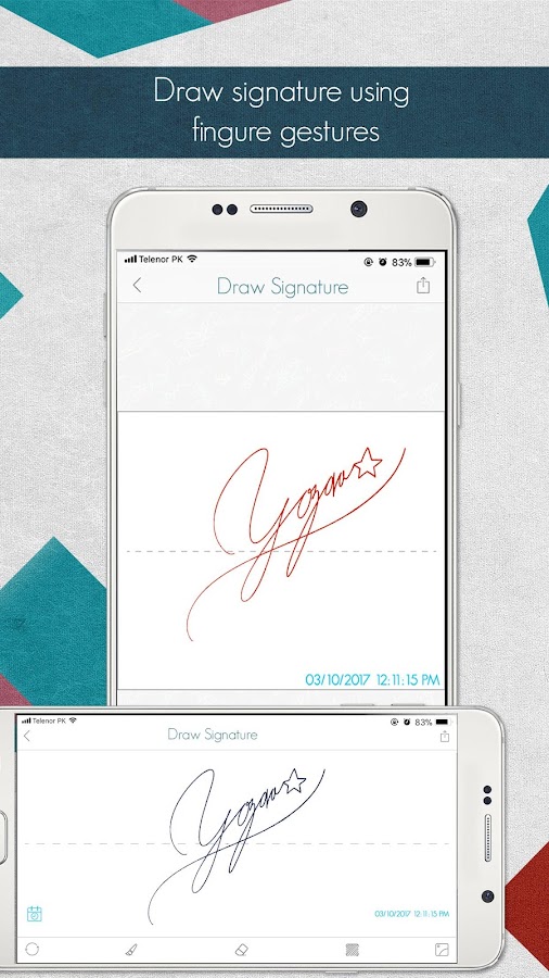 Вы можете рисовать свои индивидуальные подписи с вариантами цвета кисти, толщины и текстуры для лучшего внешнего вида, а также настраивать его после сканирования, обрезая и вращая, чтобы придать ему профессиональный вид.