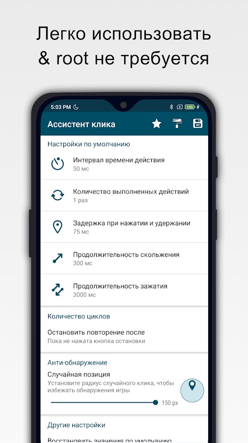 ✓ Возможность индивидуально установить параметры щелчка, такие как задержка, длительность касания, количество повторений