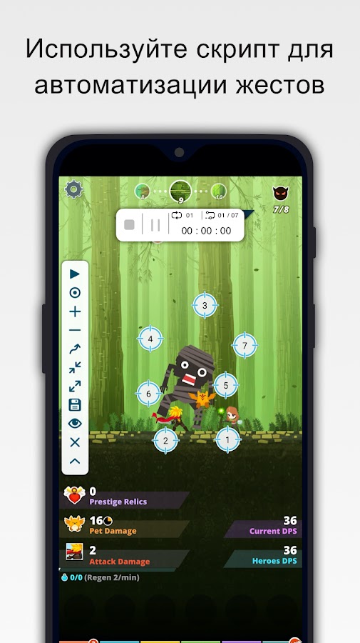 Данный автоматический кликер поддерживает множество различных действий, начиная от самых простых, заканчивая самыми сложными, к ним относятся такие жесты как щелчок, изогнутый свайп и масштабирование двумя пальцами.
