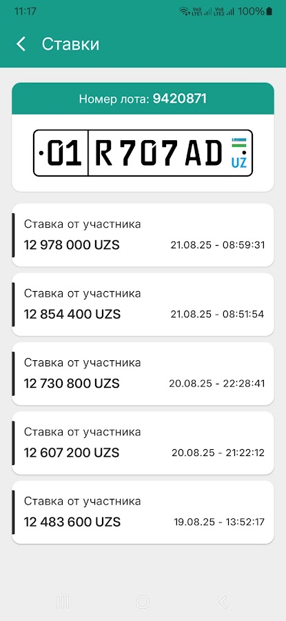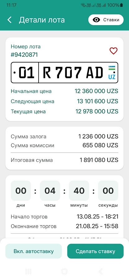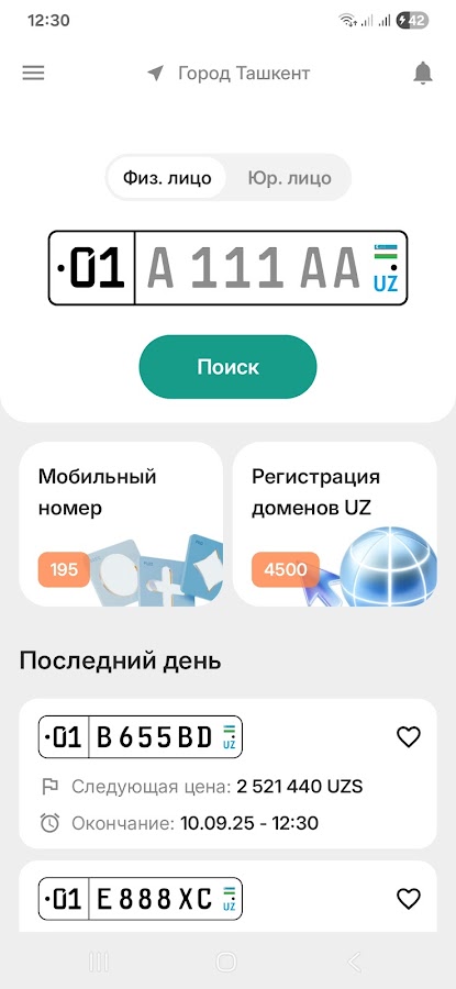 Мобильное приложение для участия в электронных аукционах автомобильных номерных знаков через платформу avtoraqam.uzex.uz.