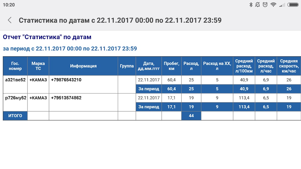 • Формирование отчётов и статистики эксплуатации транспортных средств