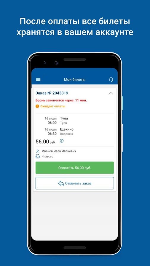 — бронирование автобусных билетов до момента оплаты