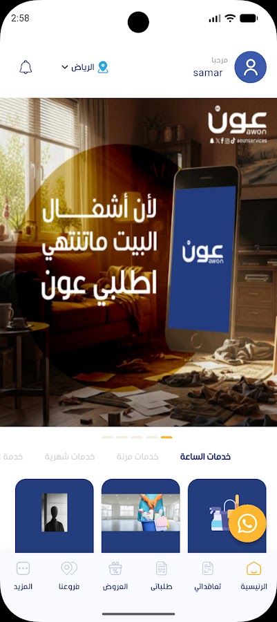 Приложение Aoun включает в себя (уборка — уход за пожилыми людьми и детьми — стирка и глажка — и другие) и предоставляет услуги, предоставляя группу лучших специалистов по гигиене, которые обучены предоставлять услуги легко и легко и к удовлетворению международных клиентов. посредством ежедневных или еженедельных посещений на определенный период по согласованию с клиентом, будь то почасовые или гибкие контракты.