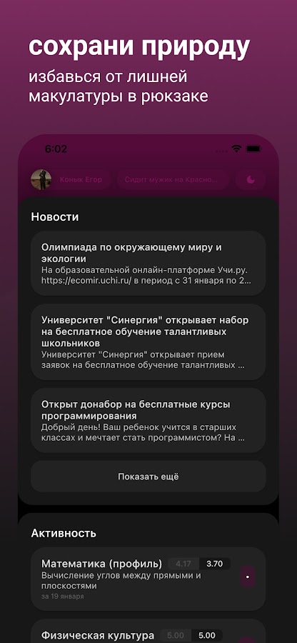 Просматривайте домашнее задание, расписание и письма от учителей без необходимости каждый раз вводить логин и пароль.