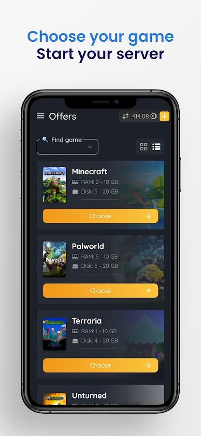 Вы получаете доступ к списку своих серверов и можете управлять настройками каждого из них, оборудованием и отправлять команды прямо со своего телефона.