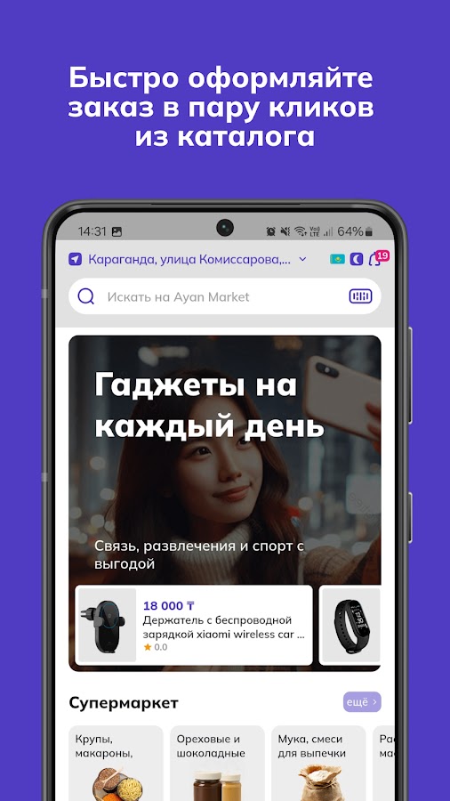 Всё, что нужно — в одном приложении: от продуктов питания до электроники, одежды, товаров для дома и многого другого.