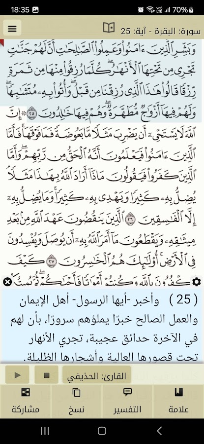 Six Arabic Tafsir(Commentary) «Al-Saa’di, Ibn-Katheer, Al-Baghawy, Al-Qortoby, Al-Tabary and Al-Waseet».