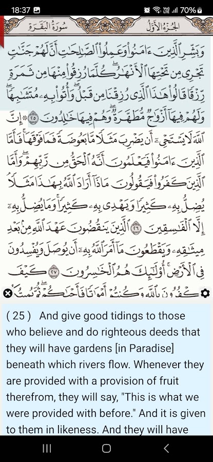 Voice Translation of the Al Quran meanings for two languages (English and Urdu).