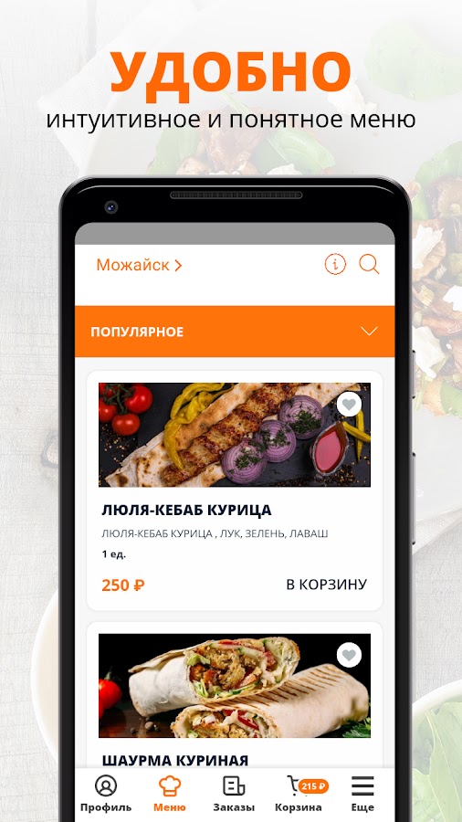 Скачивайте наше приложение, оформляйте заказ и наслаждайтесь любимой едой, где бы Вы ни были! Приятного аппетита!