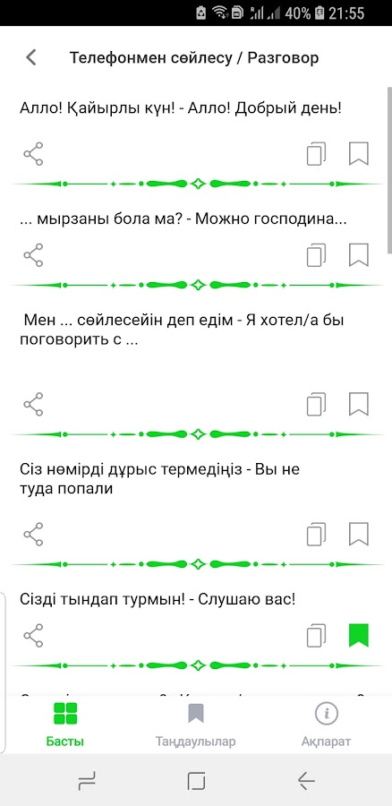 Тілашар сала бойынша қамтылған сөздер мен сөз тіркестерінен құралған. Оқуға өте ыңғайлы, көптеген жағдайларға арналған орысша-қазақша тілашар.