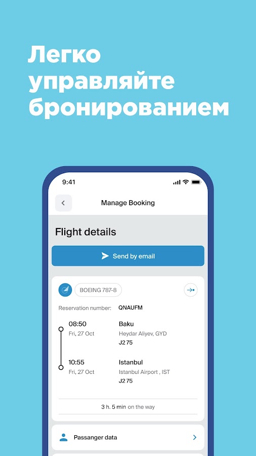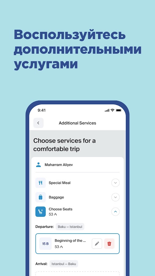 • Управляйте бронированием — Вносите изменения в бронирование, приобретайте экстра багаж и выбирайте желаемое место.