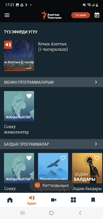 Выбирайте интересные Вам новости и репортажи и создавайте Ваш собственный список избранного. Получайте извещение о новом выпуске Вашей любимой телепрограммы. Наши корреспонденты выходят в прямой эфир из самого эпицентра событий. Слушайте радоиопрограммы “Азаттыка” через приложение – просто и удобно. Скачайте наши видео- и аудиопрограммы, смотрите и слушайте их в удобное для Вас время. Новости со всего мира всегда у Вас под рукой!