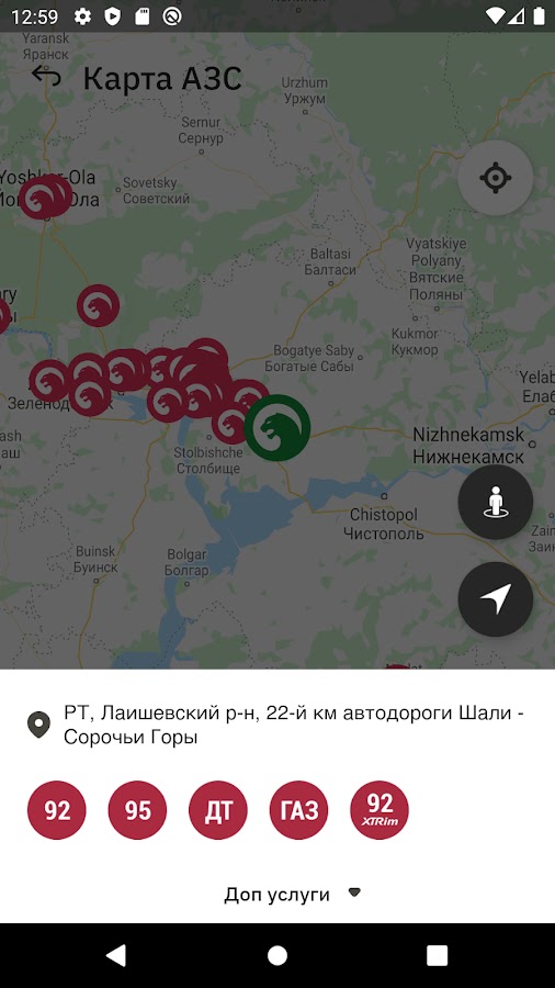 — Карта АЗС с возможностью фильтрации видов топлива и услуг;