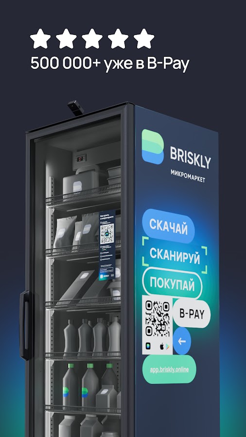 *B-Pay — приложение для покупок от стартапа Briskly, который делает первые в России магазины без кассира: микромаркеты.»