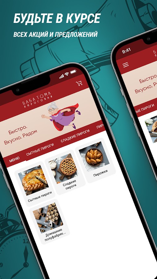 Приложение пироговой «Баба Тома», в котором вы можете заказать доставку блюд на дом и в офис в г. Владивосток.