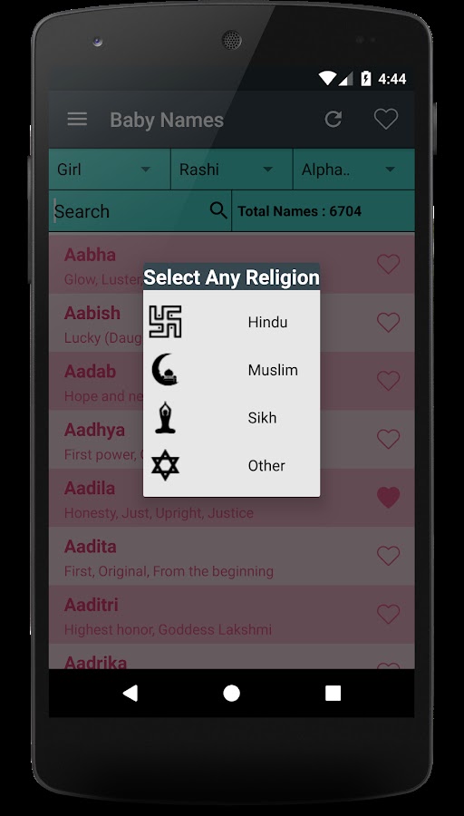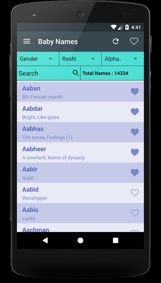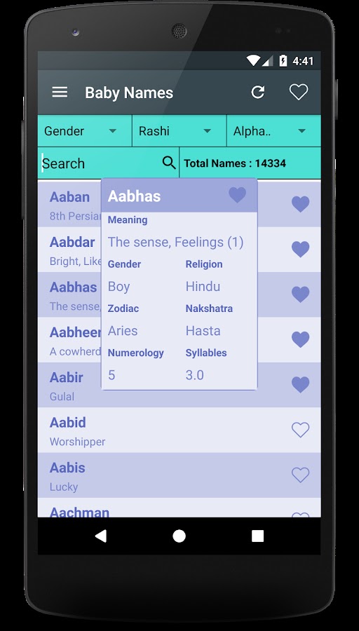 Baby Name — это приложение, которое поможет вам найти буквы Name / Zodiac / Rashi для новорожденного ребенка в вашей семье. Приложение имеет очень простой пользовательский интерфейс, и его очень легко использовать со списком детских имен от a до z. Поле поиска предназначено для помощи в поиске имени, начинающегося с определенной буквы. Вы также можете найти имена, начинающиеся с ваших любимых букв. Вы можете выбрать имя мальчика или девочку, чтобы начать поиск. Значение имени с помощью слогов, нумерологии и зодиака показано здесь в интерактивном режиме. С помощью этого приложения выбрать имя для ребенка еще никогда не было так просто.