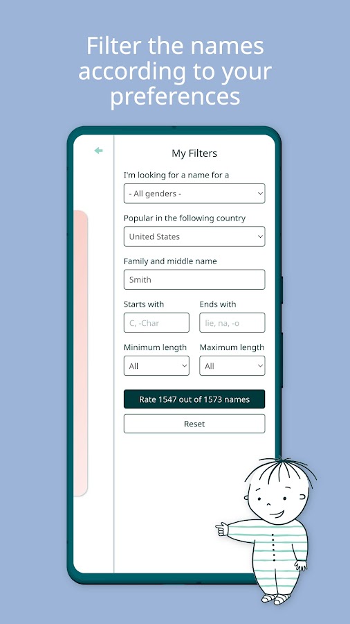 Наконец-то нашли идеальное имя — без стресса, весело и волнительно. Вместе находите имена, которые вас удивляют и радуют.