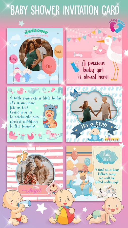 Получите Приглашение На Бэби Шауэр сегодня и начните с симпатичных открыток. Поделитесь “приглашение на вечеринку текст” с друзьями и семьей. Сделать “приглашение на бэби шауэр” очень легко. Добавьте наклейки на фото и добавьте текст. Вам понравится редактирование изображений с удовольствием приложения с текстом. Создавайте персонализированные приглашения для своего бэби шауэр всего за несколько шагов с помощью нашего развлечения приложения. Добавьте хэштег и геотег для большего количества подписчиков. Продемонстрируйте свои навыки с помощью “красивый фон для приглашений”. Произведите впечатление на своих гостей потрясающими бэби шауэр приглашениями, созданными с использованием наших приложения настраиваемых шаблонов и дизайнов.