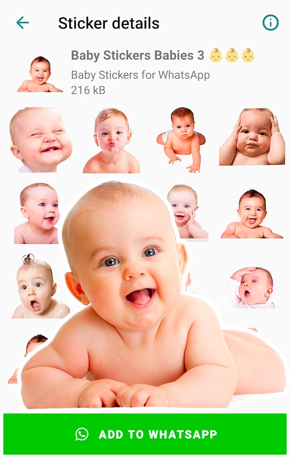 В этом приложении лучшие стикеры маленьких детей для ватсапа! Вы можете делиться и отправлять детские стикеры, супер милые детские стикеры и многое другое в чатах и сообщениях.