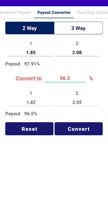 1. Калькулятор коэффициента окупаемости требует, чтобы вы вводили коэффициенты, предлагаемые букмекерской конторой на 2 или 3 возможных исхода матча.