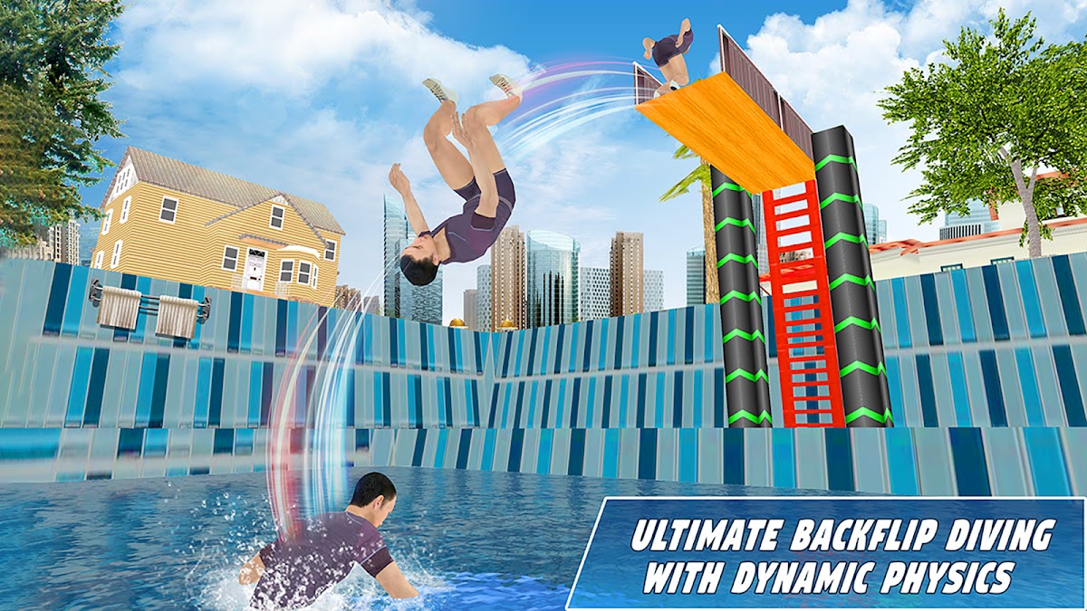 Наслаждайся самой требовательной игрой в прыжки с бэкфлипом и сделай лучший прыжок в бассейне. Игра Backflip Challenge специально разработана для всех возрастных групп, которые хотят стать мастерами Backflip в реальной жизни. Чем больше практики сделает вас мастером сальто. Множество объектов с удивительной высотой, предназначенных для сумасшедшего противодействия.