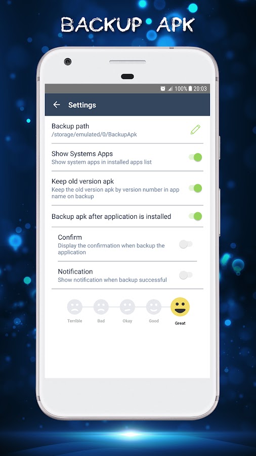 • Установите список автоматического резервного копирования для автоматического резервного копирования файлов APK.