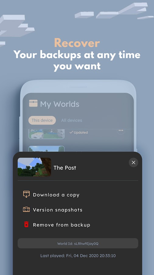 Описание Backup for Minecraft PE