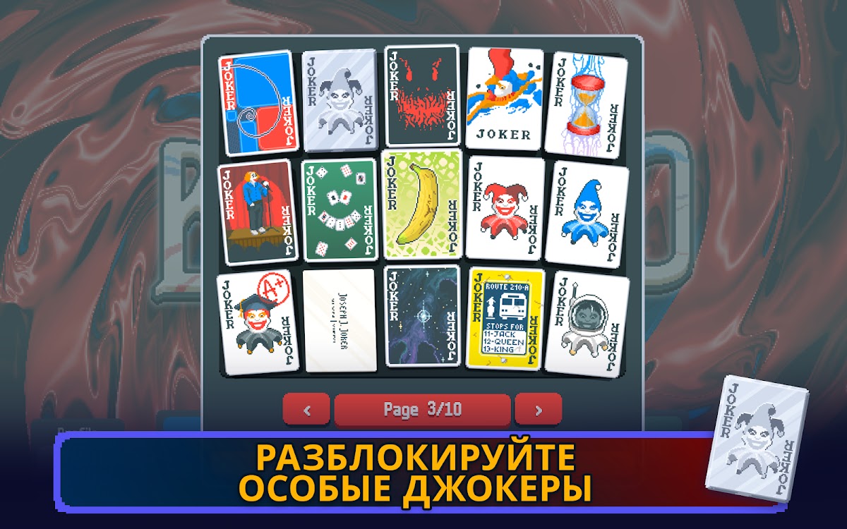 Множество игровых предметов: найдите более 150 джокеров с особыми силами. Добавляйте их в разные колоды, улучшайте карты и ваучеры, чтобы набрать больше очков.