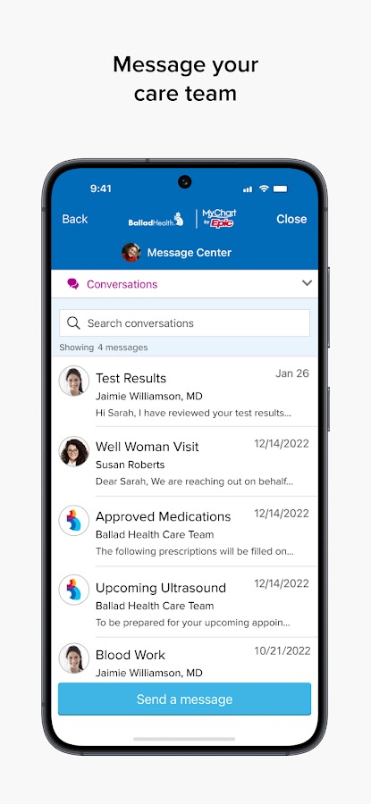 Управляйте своим здоровьем с помощью приложения Ballad Health. С помощью мобильного приложения Ballad Health вы можете быстро получить доступ к своим медицинским картам через MyChart в любое время суток, где есть интернет.