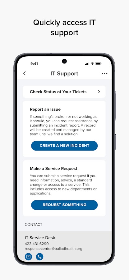 — Быстрый доступ к ИТ-поддержке, сообщив о проблеме или отправив запрос на обслуживание