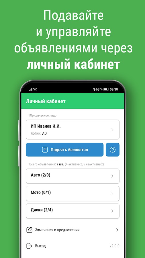 Во второй версии приложения кроме инструментов для поиска и приобретения запчастей добавлен Личный кабинет, благодаря которому вы можете разместить свои объявления и управлять ими.
