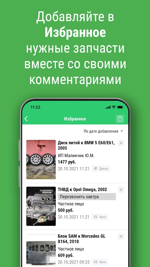• Пишите заметки к запчастям в Избранном, чтобы ничего не упустить.