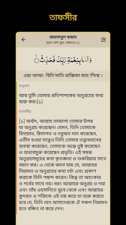 • Перевод Бангла (বায়ান, মহিউদ্দিন খান, তাইসিরুল কুরআন এবং মুজিবুর রাহমান)