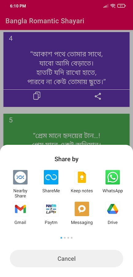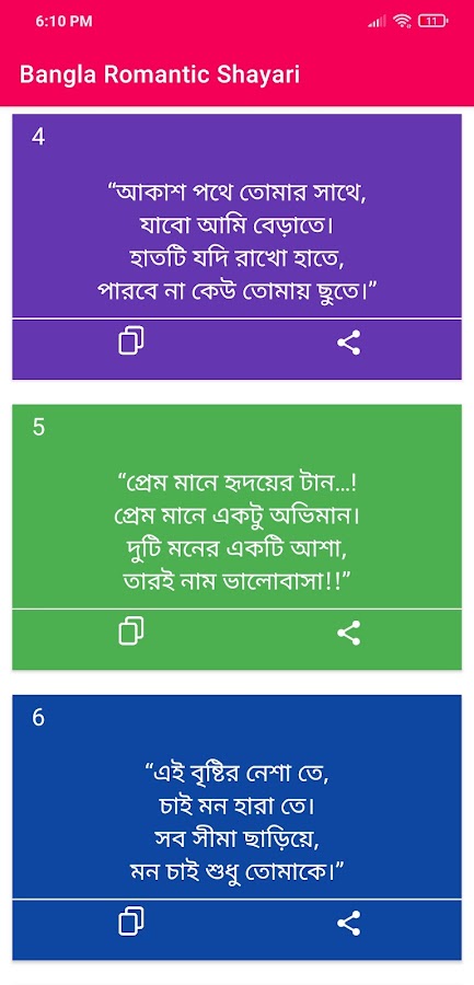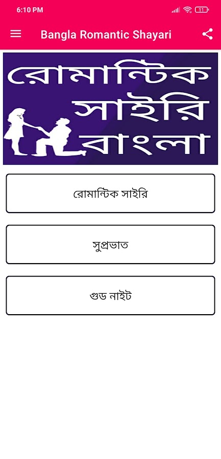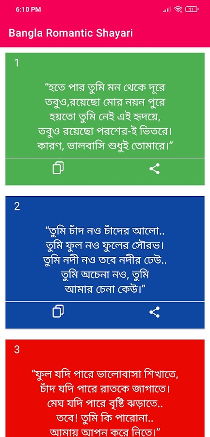 Bangla Romantic Shayari অ্যাপস মধ্যে বিভিন্ন রকমের ভালোবাসার শায়রী এবং বিভিন্ন রকমের খুব সহজেই পেয়ে যাবেন।।।।