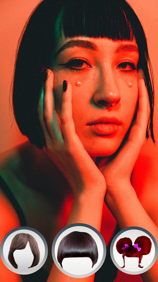 Примените фильтр челки и немедленно ретушируйте фотографию. Наша фотокамера для причесок с реалистичным фильтром для челки будет развлекать вас часами. Прическу можно легко изменить с помощью нашего приложения для редактирования фотографий. Установите это приложение бесплатно, и вы не пожалеете.