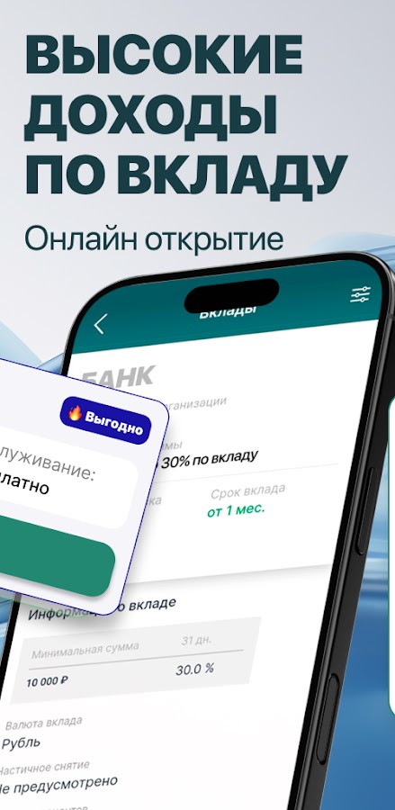 Приложение помогает подобрать выгодный вклад и изучить предложения банков.