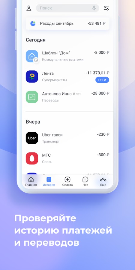• переводы между своими счетами и на другие счета, в том числе по Системе Быстрых Платежей,