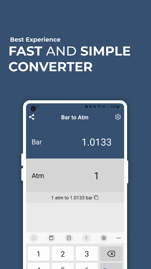 Скачайте приложение Bar to Atm Converter для Android бесплатно - последняя версия (1.0.0) уже доступна для установки на ваш телефон или планшет.