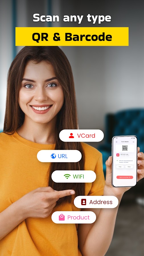 Сканер QR-кода поддерживает эти форматы, например. Электронная почта, сообщение, телефон, текст, контактная информация, событие, Wi-Fi, местоположение и веб-сайты. Price Checker Сканер штрих-кода для всех устройств.